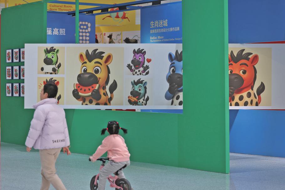 北京通州站,旅客观看站内生肖展。