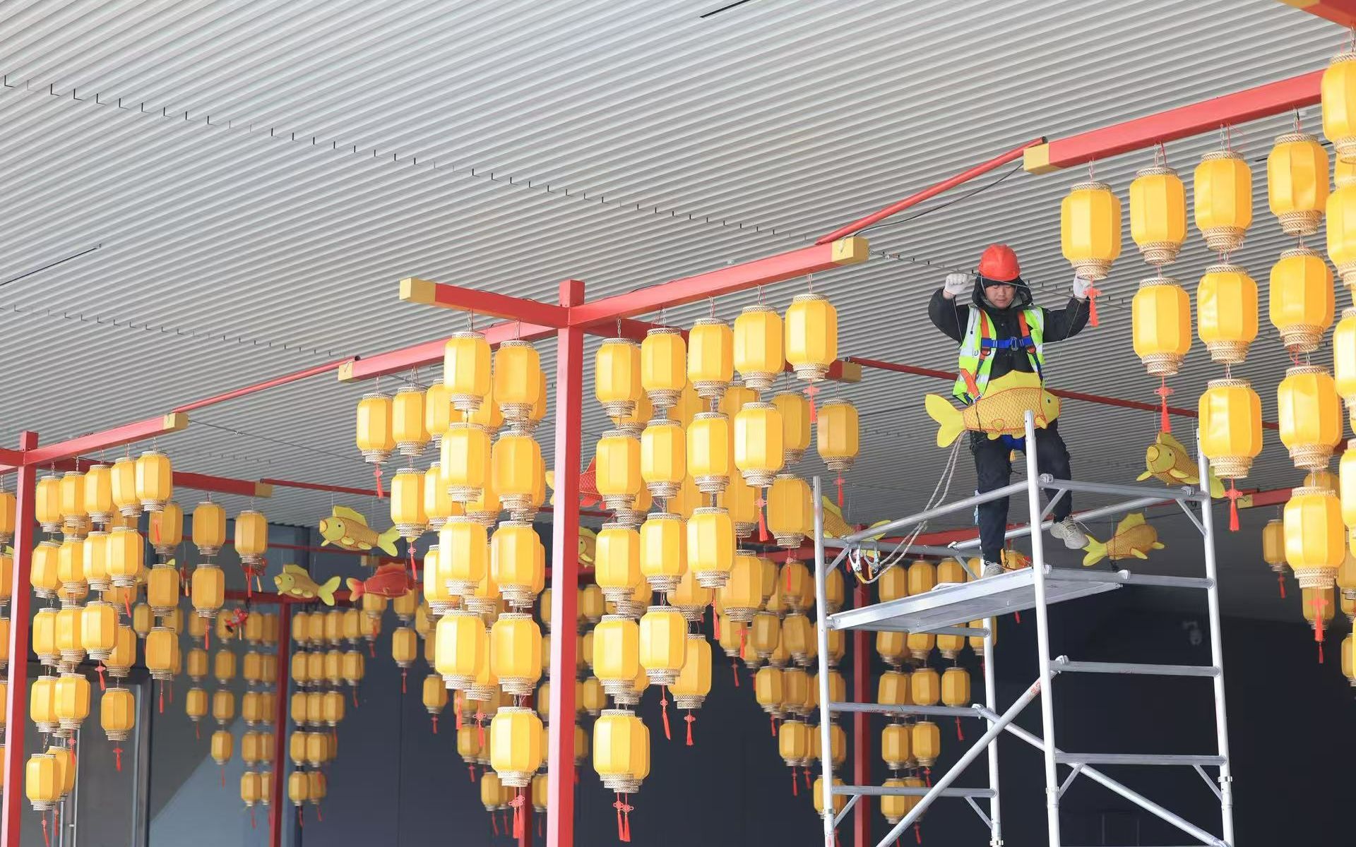 工作人员正在安装花灯。新京报记者 王飞 摄