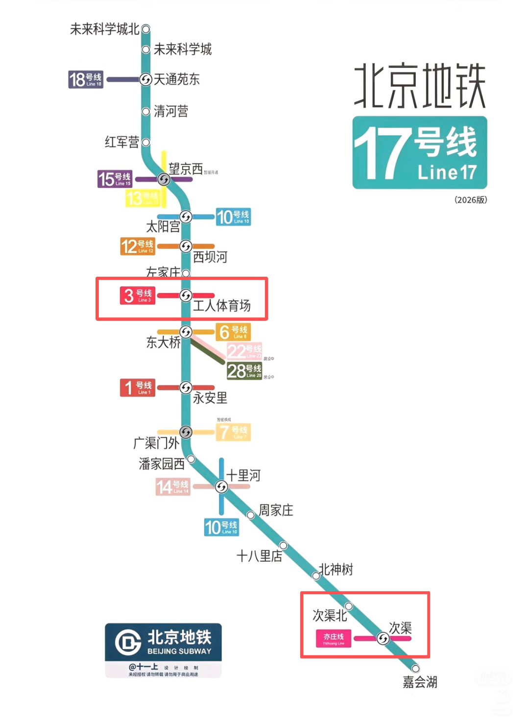 换乘17号线可直达工人体育场、亦庄新城等商圈。