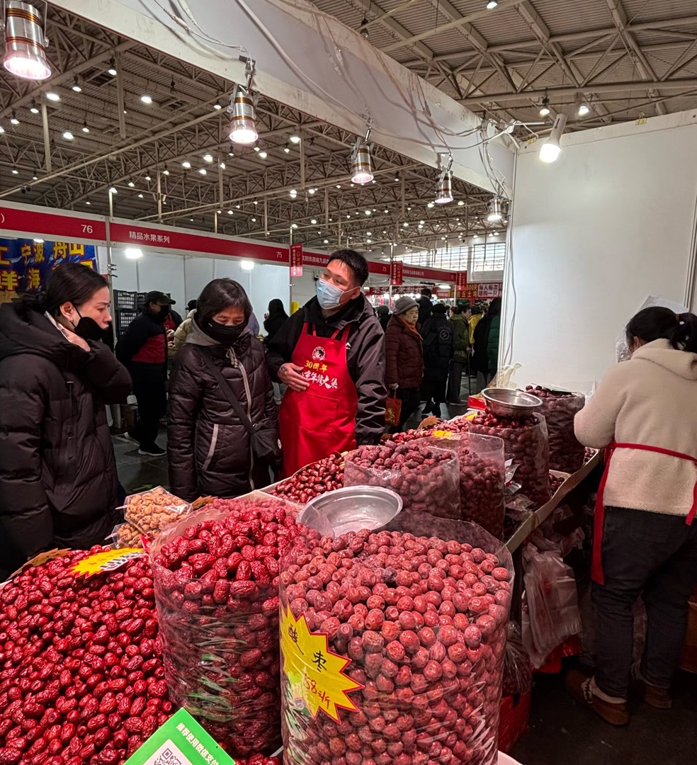 此外,相较精美包装,市民更青睐远道而来的原生态产品。在“新疆红枣产地直销”的牌子前,销售员小冯忙个不停。摊位上,若羌红枣、楼兰灰枣、和田玉枣……十几种产品红彤彤地惹人喜爱。小冯说,老板提前包车把这些产品从新疆运到了北京。