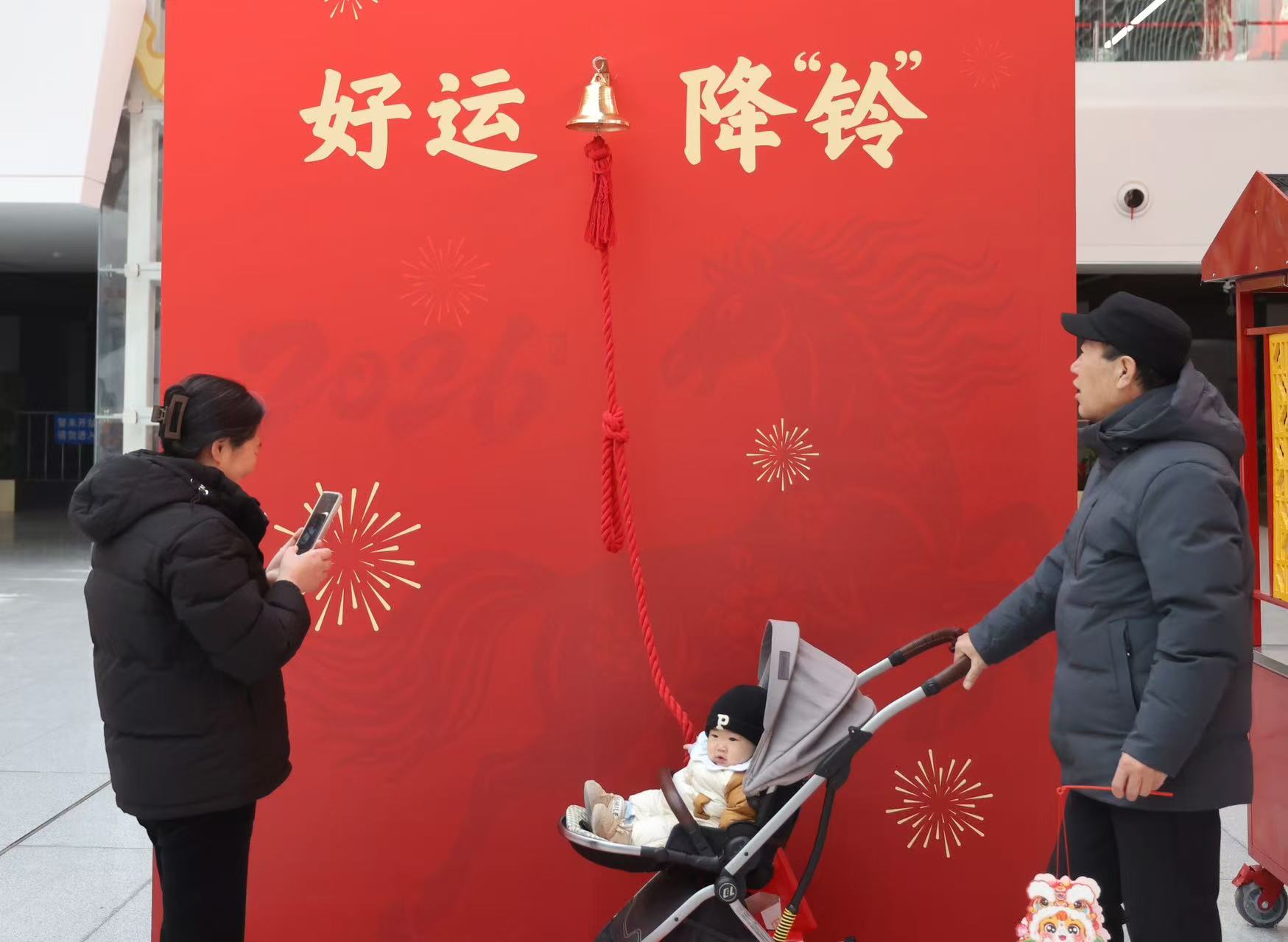 小朋友在好运降“铃”区拍照打卡。新京报记者 王贵彬 摄