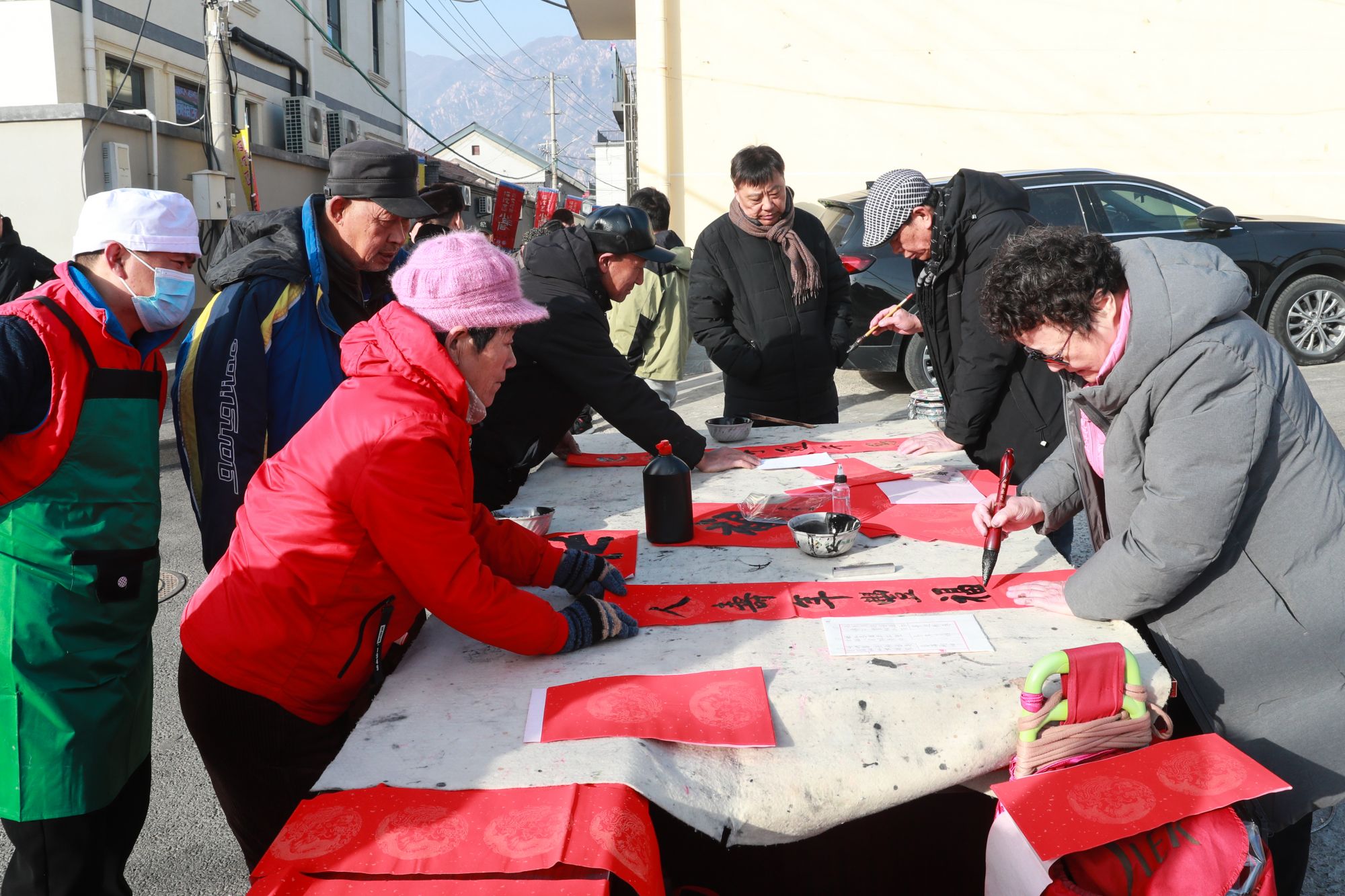 海淀区书法协会及北京四香书画院的书画家们应邀前来,为辖区百姓写春联,送“福”字。书画家们将心意融入笔墨之中,字迹或苍劲有力,或飘逸俊秀,挥毫泼墨间道尽满心祝福。