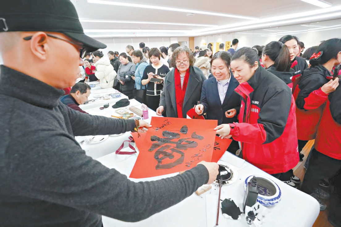 书法家为家政服务从业者写福字、送祝福。 北京日报记者 方非摄