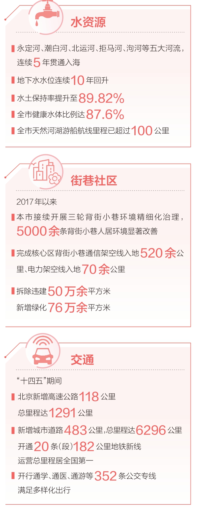 一批服务就学、就医、通勤的急难愁盼路段陆续打通。西城区儿童医院北侧的月坛南街1号院北侧路开放交通后,有效织补区域路网,市民就医更加便捷;通州区春明西路北段贯通后,服务中国人民大学通州校区师生出行,延伸了城市绿心公园生活圈;朝阳区北苑东路的贯通,实现了回天地区北五环与北六环的高效连接,分流立汤路车流,周边居民前往天通苑东地铁站绕行距离缩短5公里。