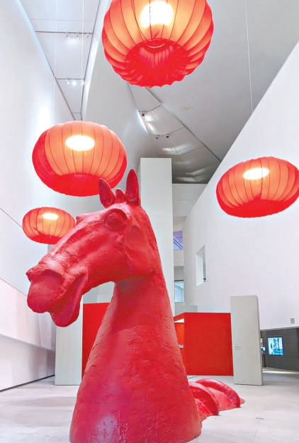 走进中央美术学院美术馆一层大厅,一座近5米高的红色马头造型艺术装置喜庆红火。“马头”形象取自该馆二层馆藏“西汉陶马头”,艺术家卢征远在保持原“马头”形象精气神的基础上进行造型提炼和艺术塑造,使之化身为连接古今的精神象征,也由此拉开央美美术馆2026艺术新年展出季的序幕。