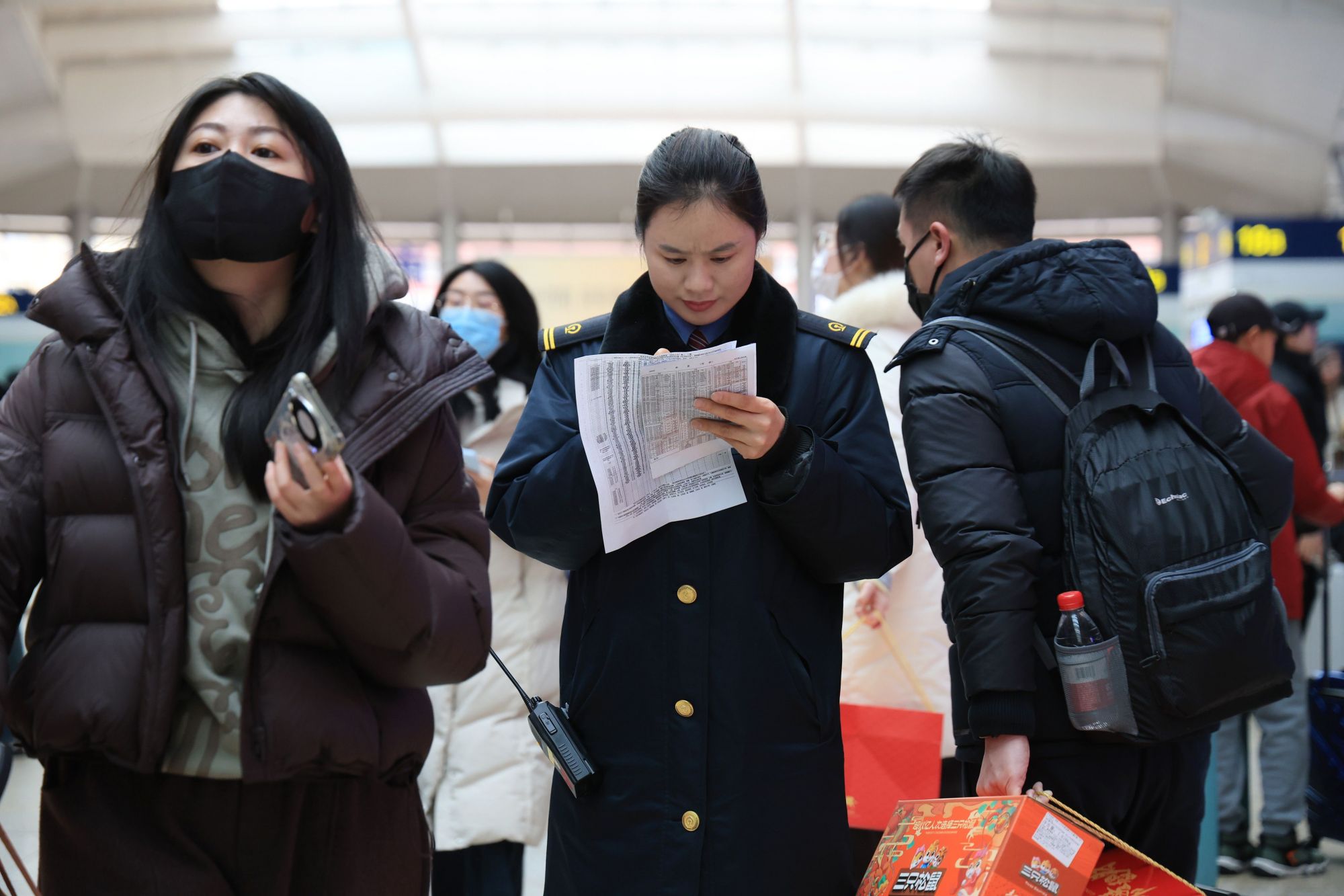 春运的旅客中,拖家带口、扛着大包小包的特别多。人一多,事就杂。节前有位刚做完手术的旅客,突然在人群里晕倒,工作人员发现后立即按预案紧急处理。“突发情况没个准谱,碰到了就得马上解决。”李玲说。