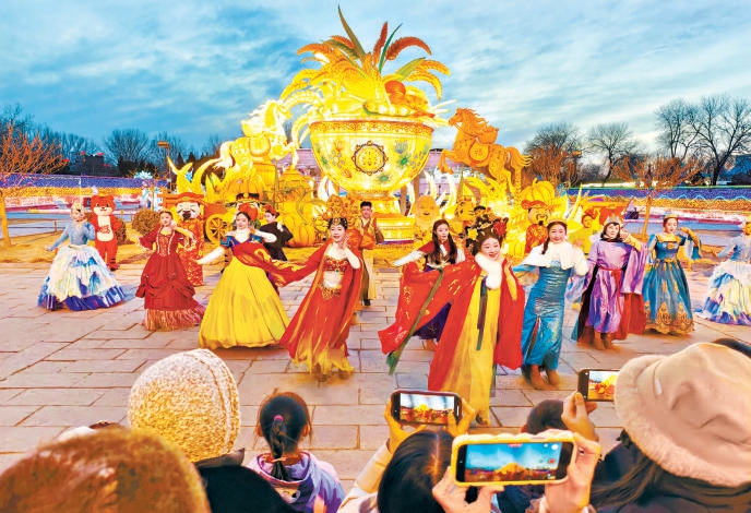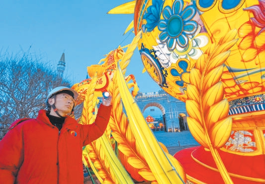 阳超已经两年没回家过春节了,每个假期都在灯会现场坚守。他来自四川自贡,全家人一起看灯会是烙印在他脑海里的儿时欢乐记忆。从事花灯行业十多年,他打心眼里热爱来自家乡的非遗彩灯。“花灯怎么做得这么漂亮?”他巡场时,有游客好奇发问,他打开了话匣子,如数家珍般向游客介绍自贡非遗彩灯的技艺。看到自贡非遗彩灯在北京亮相,更多市民游客通过赏花灯感受年味儿和非遗技艺,他内心无比自豪。