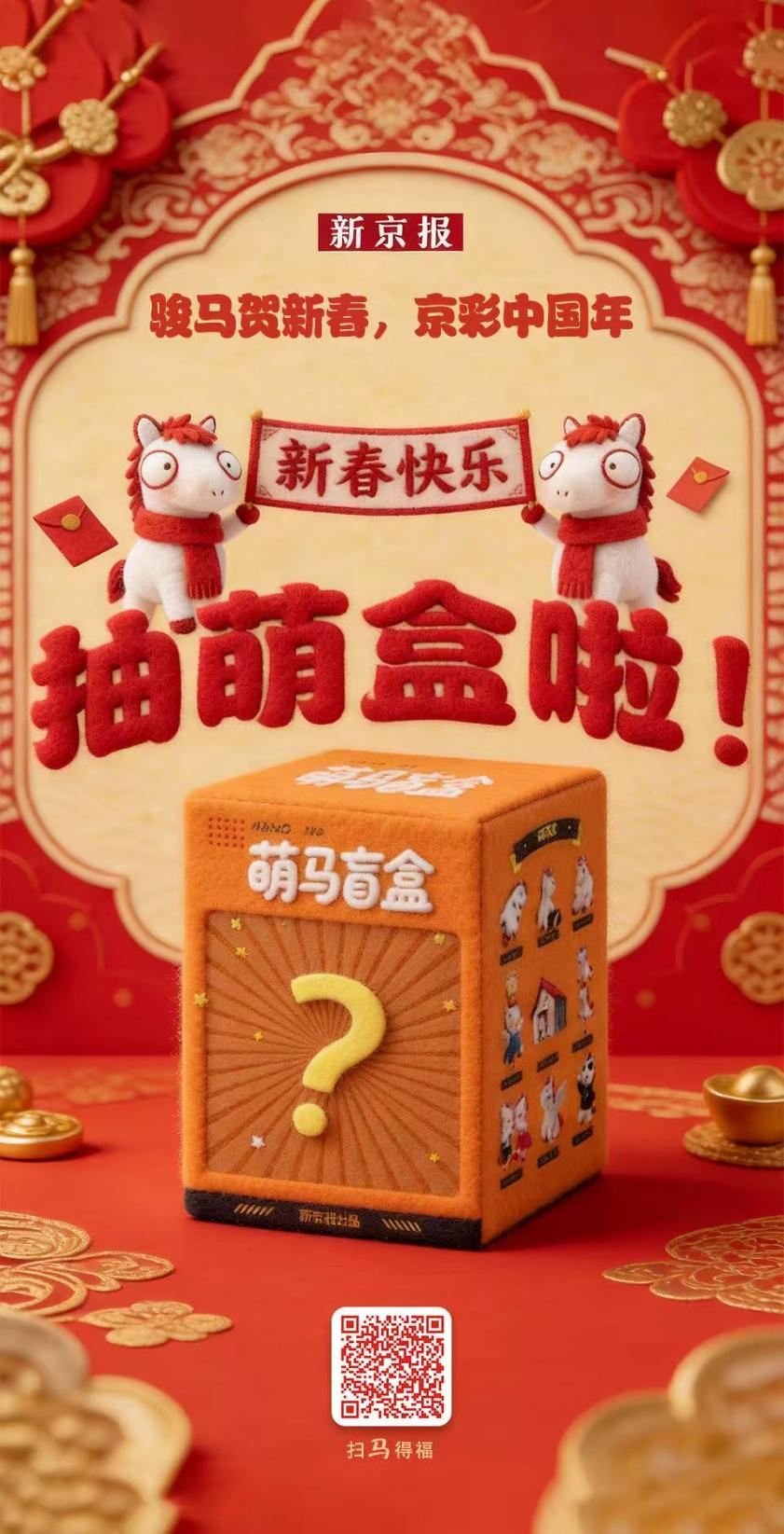 骏马贺新春,京彩中国年。来自马年这份电子贺卡请查收。新京报《马年抽萌盒》H5萌力全开~戳一戳,软fufu小马驹蹦跶送祝福!戳图片↓↓↓