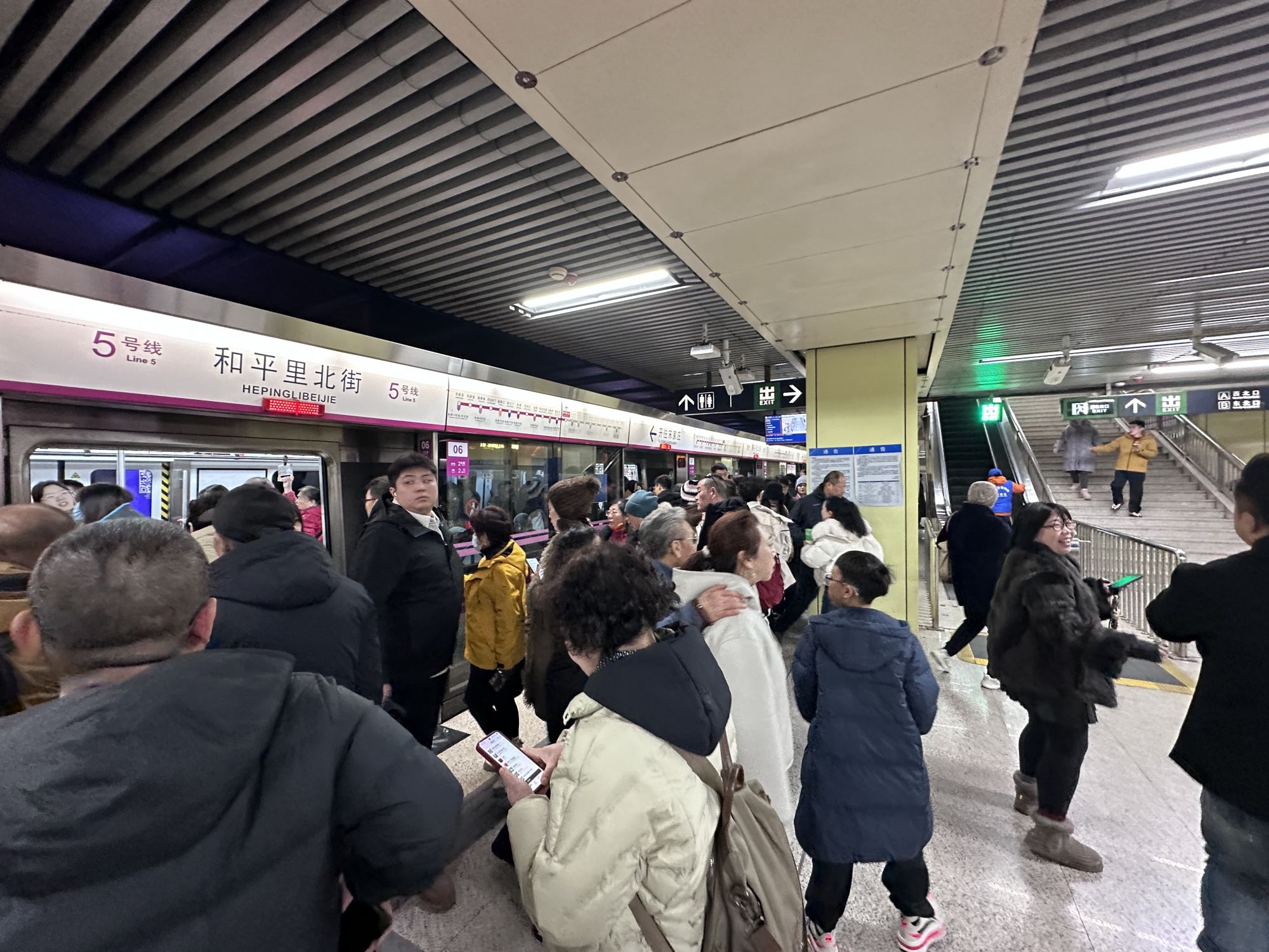正月初一,5号线和平里北街站迎来大客流。新京报记者 裴剑飞 摄