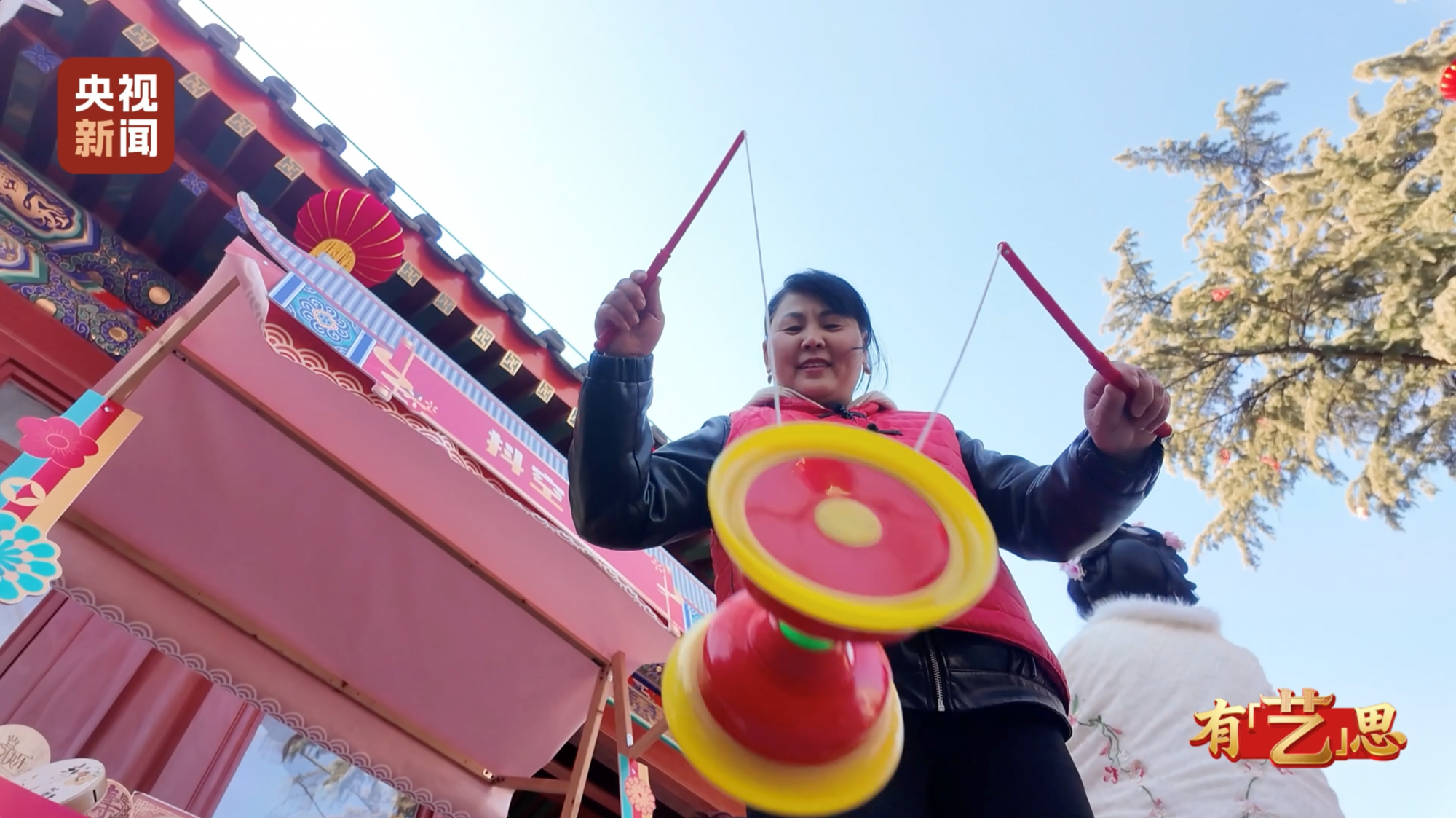 抖空竹的师傅手一抖 线一拉