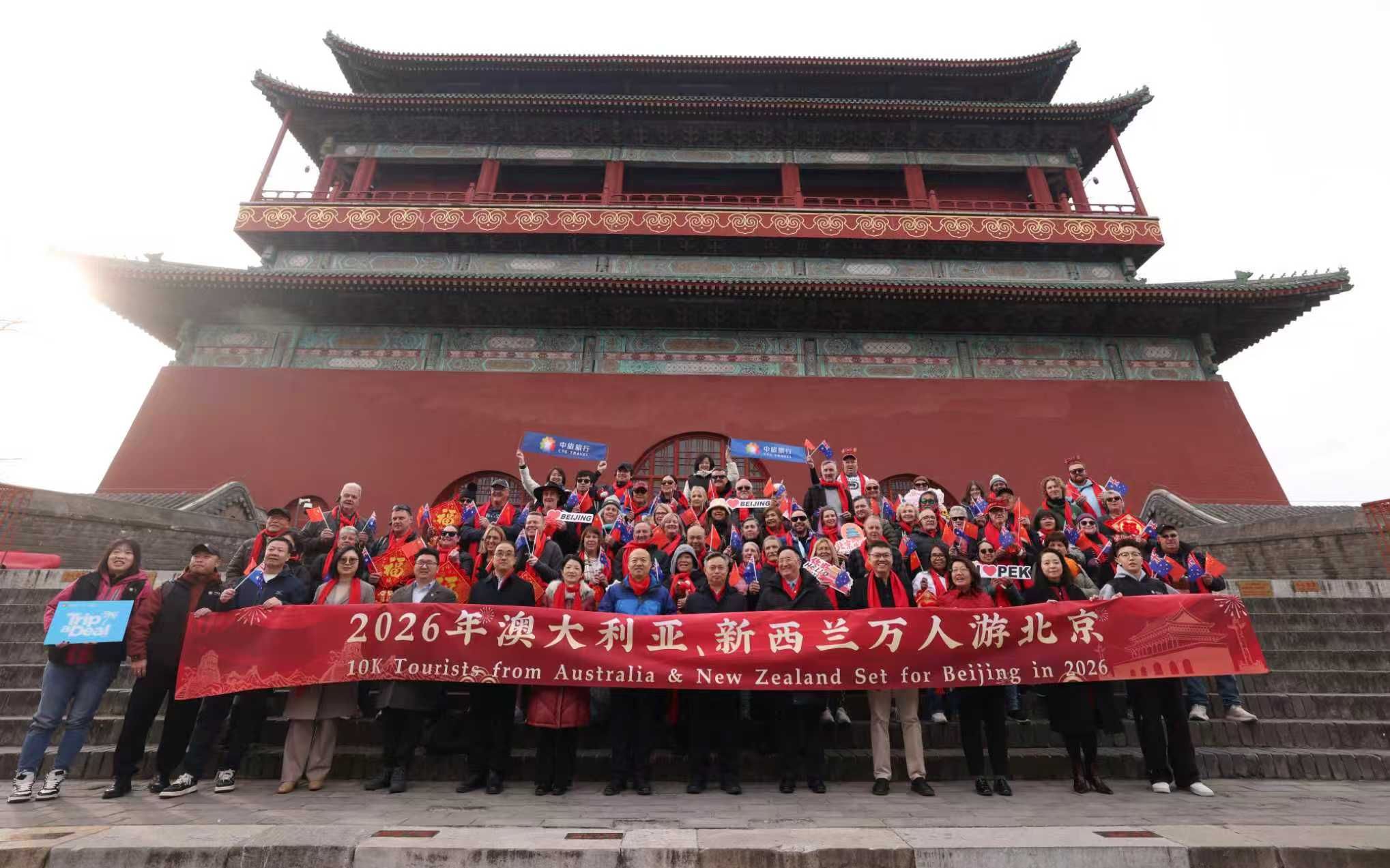中旅旅行总经理助理张克雄介绍,此次“澳洲万人游北京”活动采取分批来京的形式展开,将让更多澳洲游客深度体验北京的中轴线文化、皇家园林、胡同风情等特色文旅资源。“这些活动将进一步增加北京乃至中国在澳大利亚甚至南半球旅游市场的影响力。”他表示,正值中国春节期间,澳洲游客的旅行线路不仅包括天坛、颐和园、长城、故宫等传统景点,还增加了胡同游,在四合院里品尝北京美食等极具烟火气的环节。