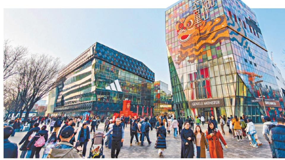 去年年底亮相的一系列全球奢侈品牌的独栋旗舰店,春节期间也吸引众多游客驻足。“还是第一次来,太炫酷了!”北京市民李先生带着家人首次来打卡,外立面形如花瓣的北京迪奥之家、在灯光映照下如同水晶宫殿的路易威登独栋建筑,都令他印象深刻。