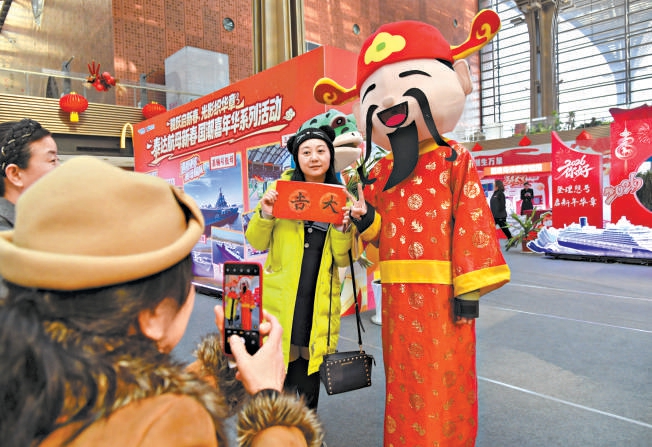 滨海新区2026“向海乐活·年味滨海”活动中,市民游客与“财神爷”亲密互动,为新春佳节“破”出满满福气与好运。 贾磊摄