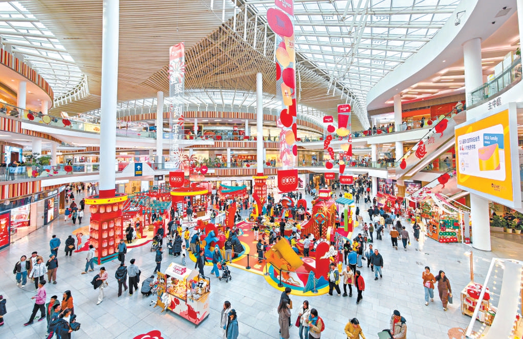 在西红门荟聚购物中心,红火喜庆的中庭迎接八方来客。 北京日报记者 邓伟摄