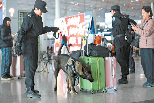 春运期间,首都机场日均客流量接近20万人次,高峰时段更是超过21万。往年此时,马振鑫带领的多是体型小巧、活泼的史宾格搜爆犬。今年,随着9头昆明犬作为“新面孔”亮相航站楼,安保力量有了新的补充。