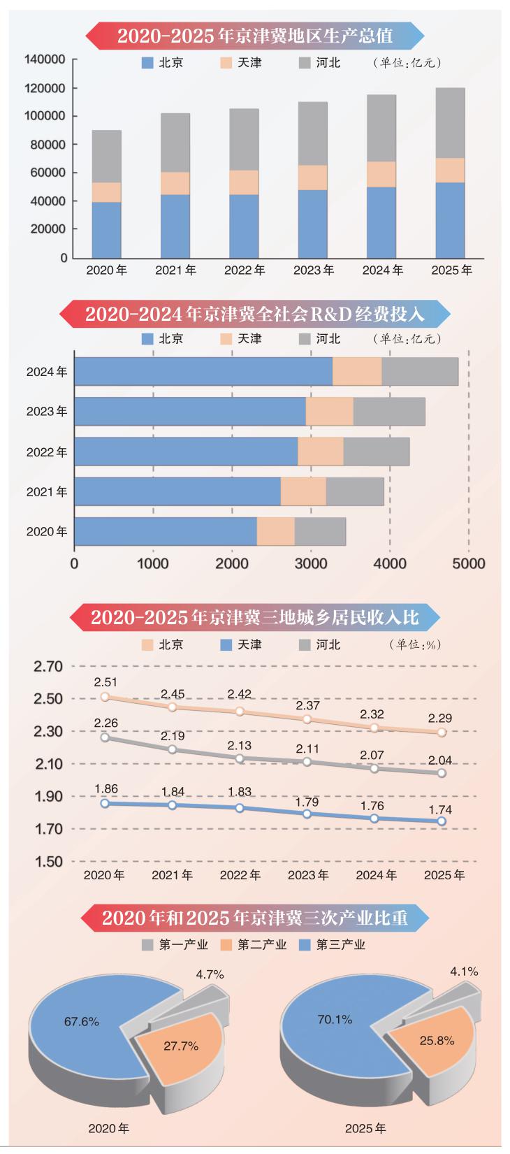 “十四五”时期京津冀地区生产总值由2020年的8.96万亿元增加到2025年的近12万亿元。