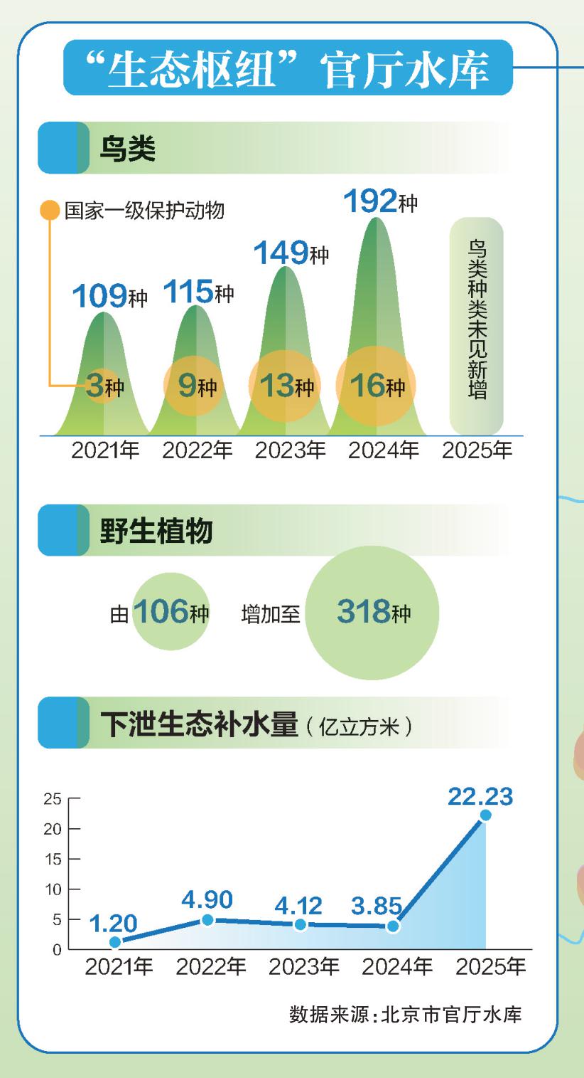 2021年、2024年、2025年,密云水库三年接续突破历史最高水位、最高蓄水量,2020年至2025年,累计向北京生活供水和水源地补水33.27亿立方米,这座首都的“大水缸”常年保持满溢清澈。