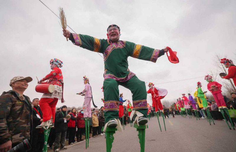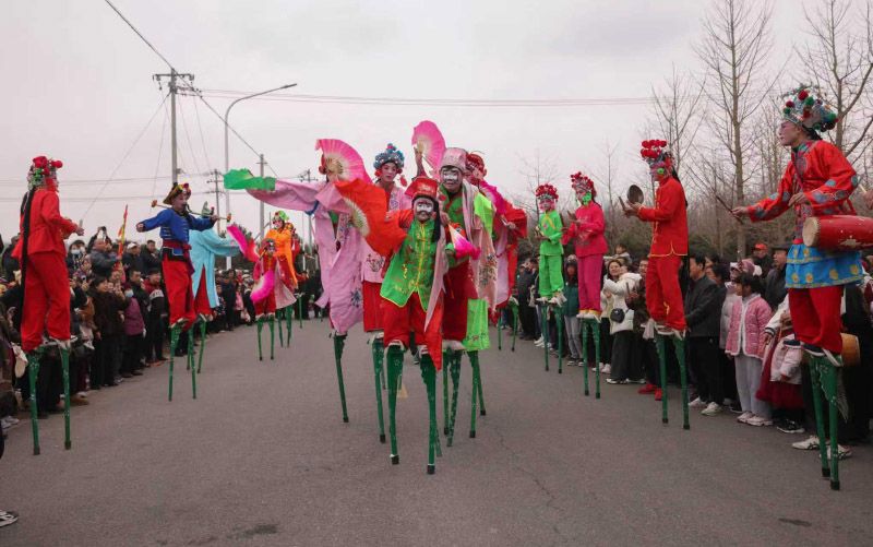 2月25日,大兴区榆垡镇“金马踏春·非遗焕彩”新春传统花会展演系列活动火热进行中,在南张华村,表演高跷的村民们身着彩衣、步伐灵动,向乡亲们传递着新春祝福。活动将持续至正月十五,花会展演将陆续走进全镇十余个村庄。