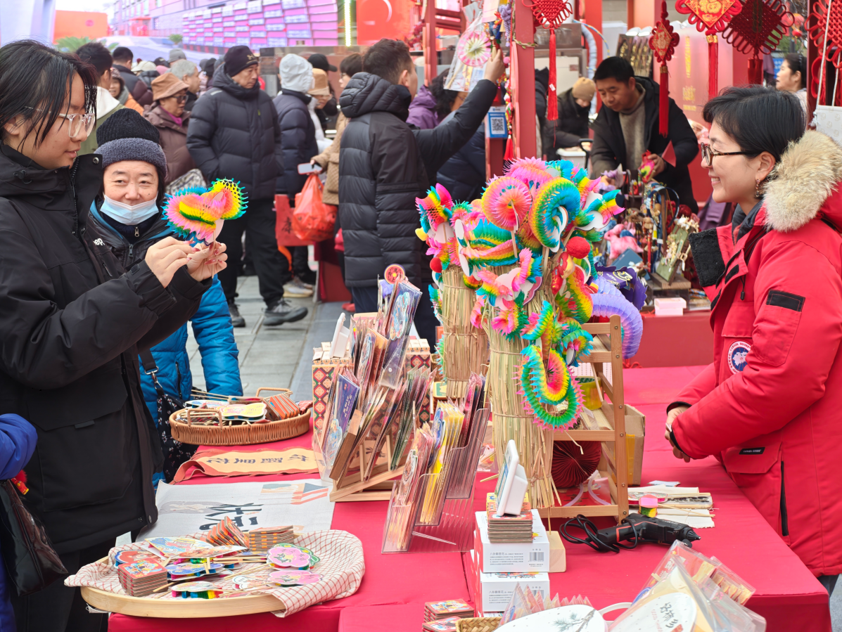 节后工作日,新春市集依然热度不减。不少北京市民选择在节后“错峰”出行,其中不乏专程前来寻找童年记忆的老北京人。“这不是我们小时候玩的吗?有年头没见了。”在李梅的“翻里花”摊位前,很多老人一边把玩,一边给小辈讲述童年故事,场景热闹而温馨。