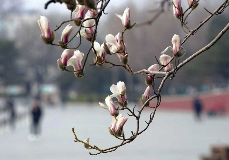 3月1日,长安街国家大剧院前的数株玉兰携春风悄然绽放,满树繁花,美不胜收,吸引众多市民游客前来拍照打卡 。
