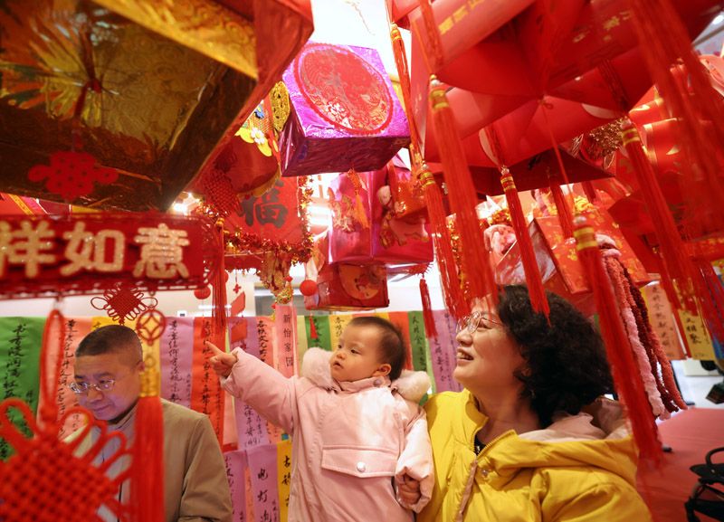 3月2日,“骏马贺新春 京彩中国年”崇文门外街道第二十五届花市元宵灯会在哈德门中心 LG 层中厅拉开帷幕。活动现场,数十组璀璨花灯一齐点亮,这些由辖区居民亲手制作的花灯,不仅是节日的装饰,更凝聚着浓浓的邻里情。图为家长带着小朋友观看花灯。