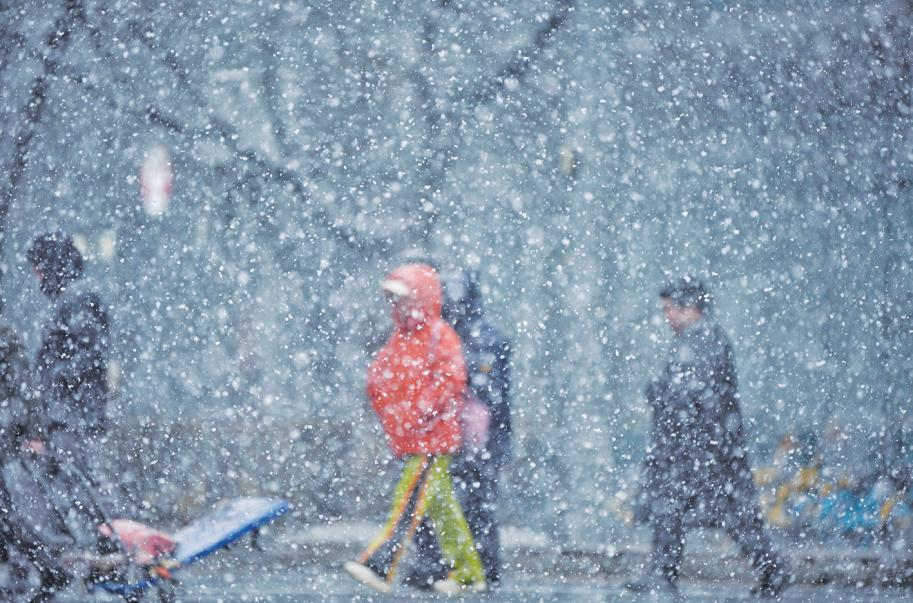 3月4日,朝阳路,行人在大雪中过马路。新京报记者 薛珺 摄