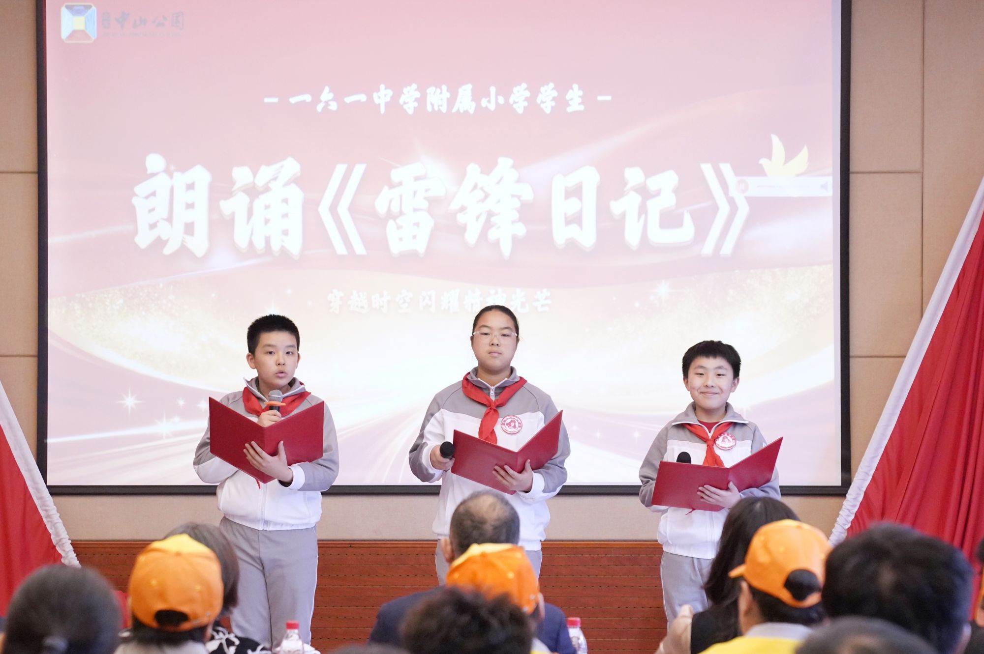 3月5日,中山公园,“红领巾”志愿者朗诵《雷锋日记》。新京报记者 薛珺 摄
