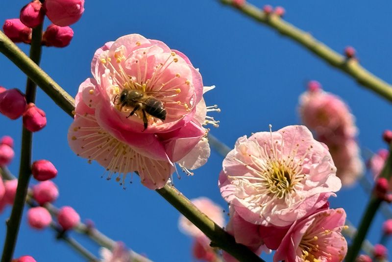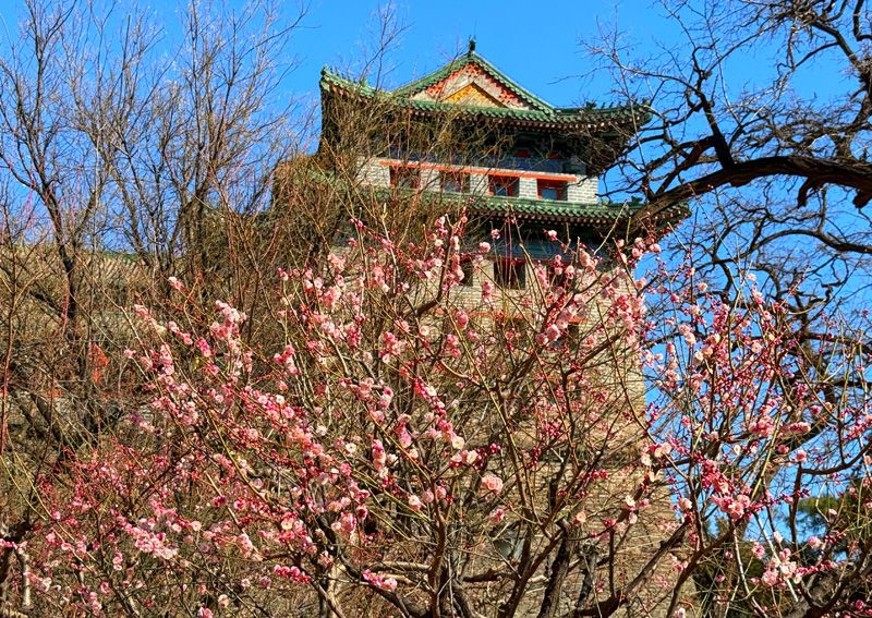 梅花香味扑鼻而来。北京明城墙遗址公园经过多年的引种栽培,已栽植五十余个品种、一千余株梅花,涵盖了朱砂、宫粉、玉蝶、绿萼等十一个品种群,贯穿公园东西,是京城内梅花品系最多、品种最全的赏梅胜地之一,预计三月中旬,这里的梅花将达到盛花期。