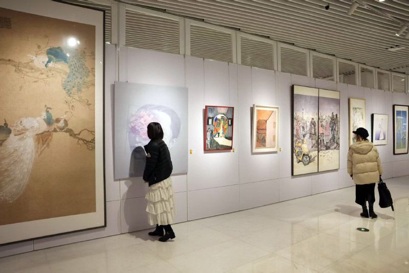 观众欣赏入选优秀作品。经过专家委员会评审,最终评选出入选作品230件,其中优秀作品68件,包括中国画、油画、水彩·粉画、版画、综合材料绘画、雕塑、陶艺等。
