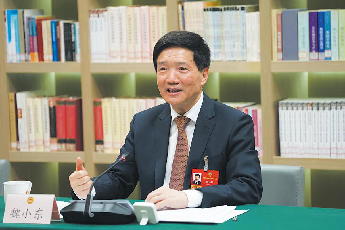 3月8日晚,全国政协委员、北京市政协主席魏小东接受媒体采访。 张斯伟 摄