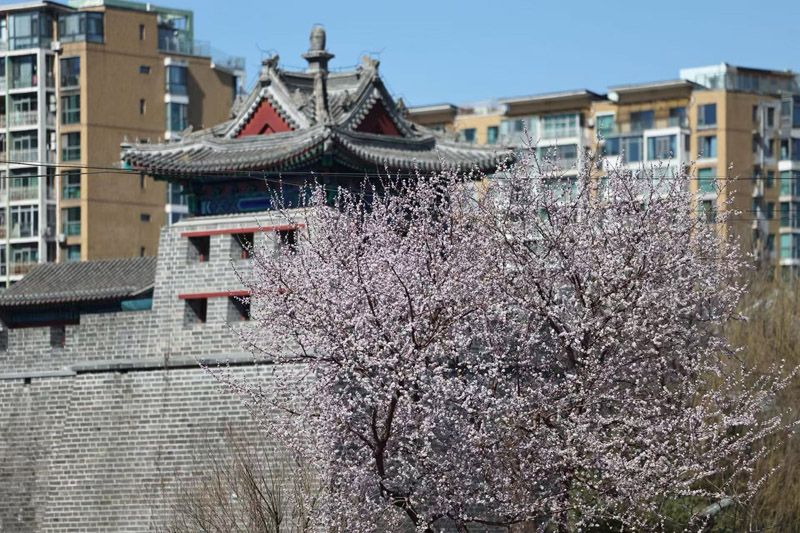 来源标题:左安门角楼:山桃映古建
