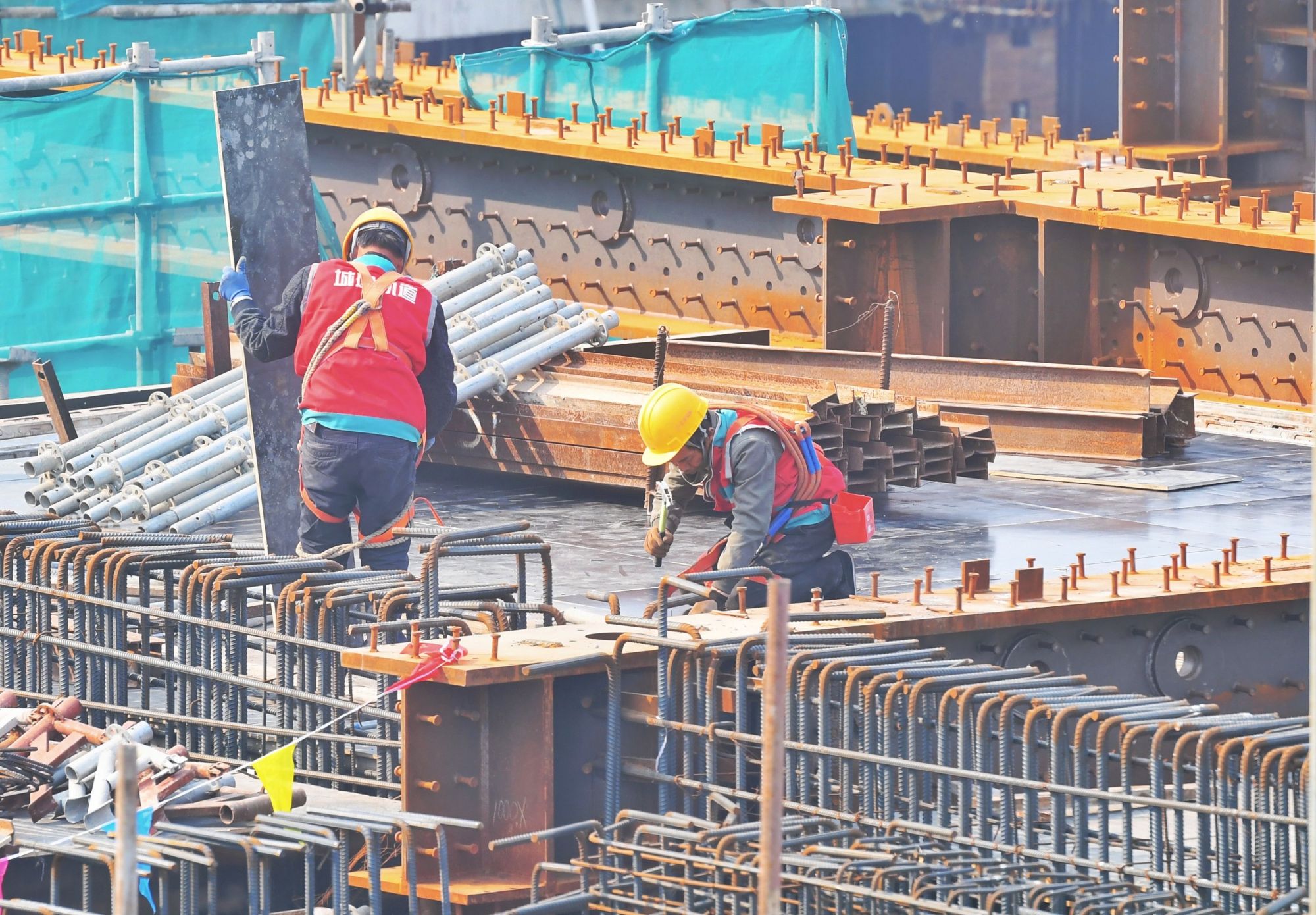 施工现场人员已增至约1000人,各作业面有序铺开。新京报记者 王贵彬 摄