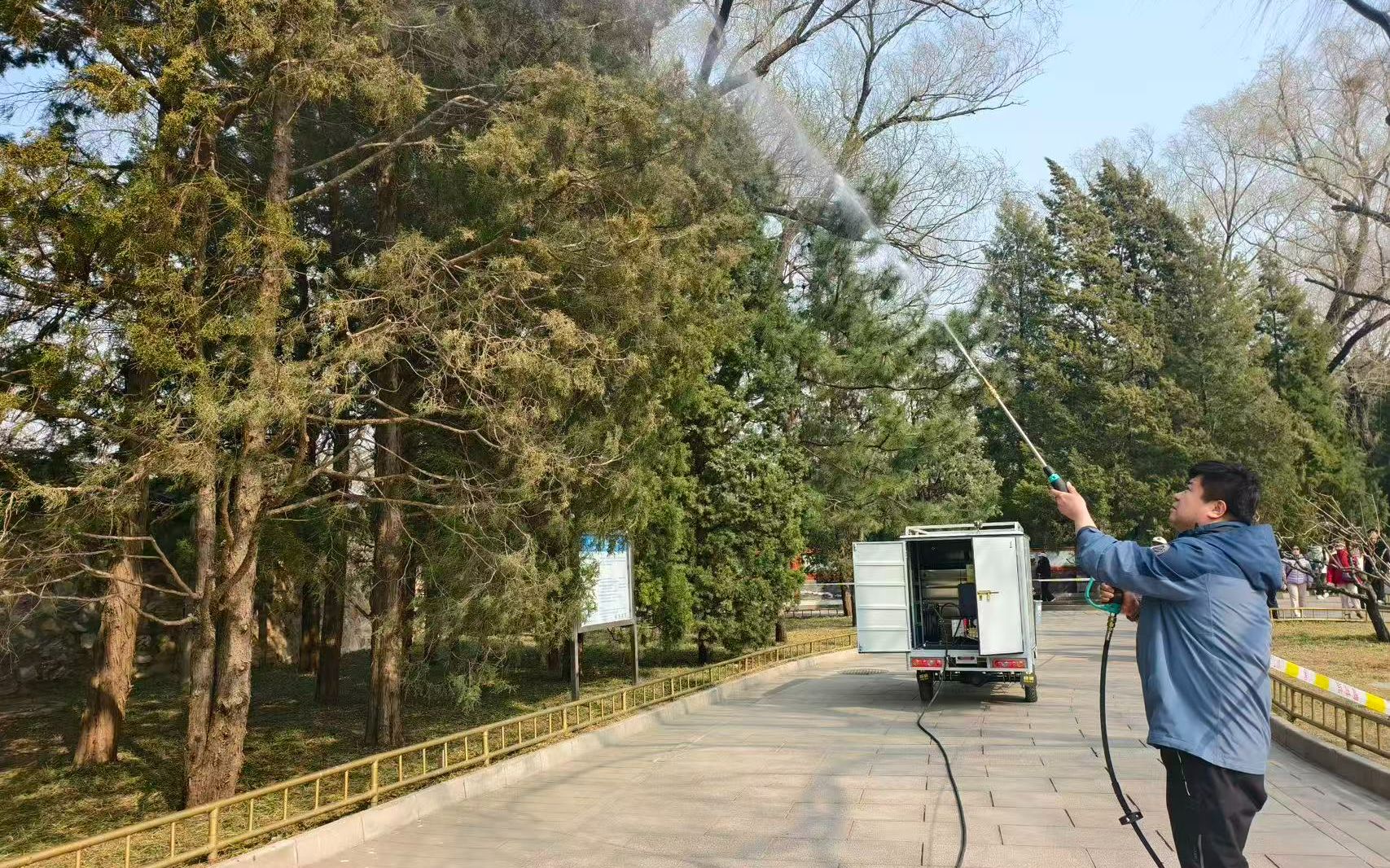 颐和园对树木进行喷淋,降低花粉浓度。颐和园供图