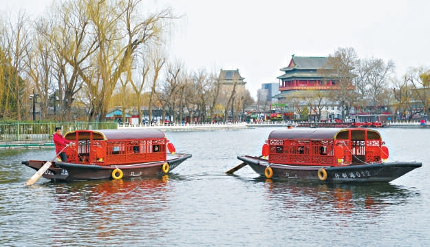 什刹海游船昨天(14日)开航,春日泛舟尽赏京城水韵。 本报记者 方非摄