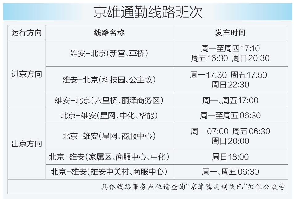 记者从北京市交通委获悉,经过一年多试运营,3月16日起,京津冀定制快巴北京至雄安新区通勤线路正式开通运营。新线开通后,京津冀定制快巴支线将达57条。