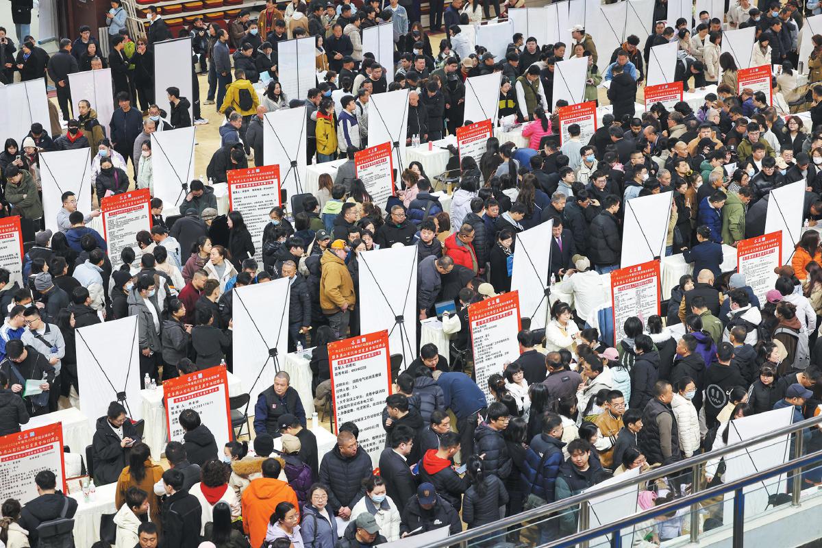 3月16日,北京市房山区2026年春风行动暨就业援助季——服务燕山石化转型发展专场招聘会在良乡体育中心训练馆举办。这场招聘会,不只是岗位的对接,更是一个集成了多维服务的“求职便民全能站”。社会保险、劳动用工、职业指导、反诈宣传、住房公积金……政策综合服务圈让求职者“一站式”解决后顾之忧。 新京报记者 王贵彬 耿子叶 摄影报道