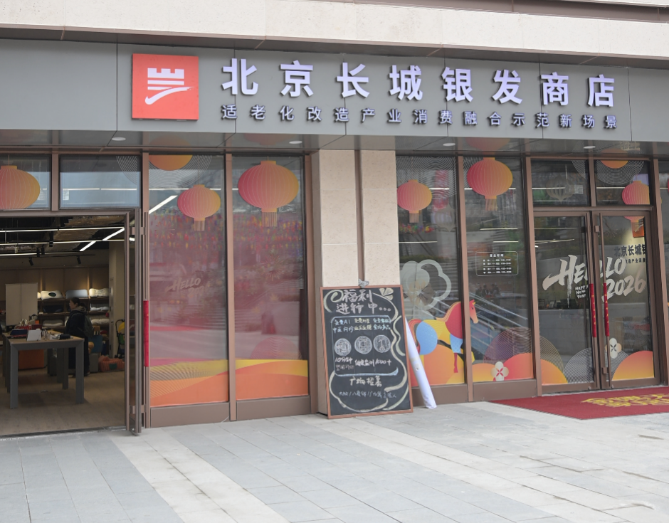3月7日,北京长城银发商店在金隅天坛家居Mall开业。这家500平方米的店铺最大的亮点是“零台阶”的无障碍设计:脚下是防滑地胶,身旁是带有防护条的货架,处处细节皆从长者需求出发。