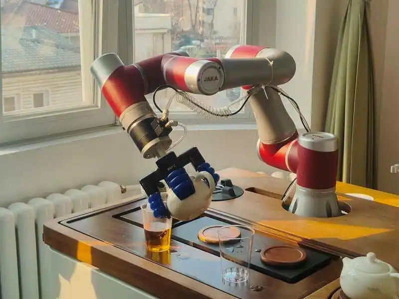 智慧康养机器人养老驿站三层棋牌室内的机器人正在泡茶。千龙网记者 徐锟 摄