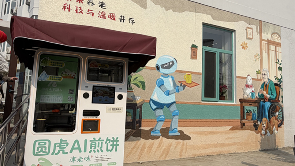 智慧康养机器人养老驿站门口设有煎饼机器人。千龙网记者 徐锟 摄
