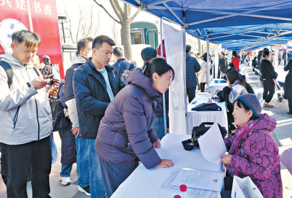 3月20日,京张铁路遗址公园,求职者络绎不绝。海淀区花园路街道联合朝阳、东城、西城组成的“四区六街就业联盟”,把招聘会搬到了公园里,90多家参与招聘企业现场与300余人达成初步意向。