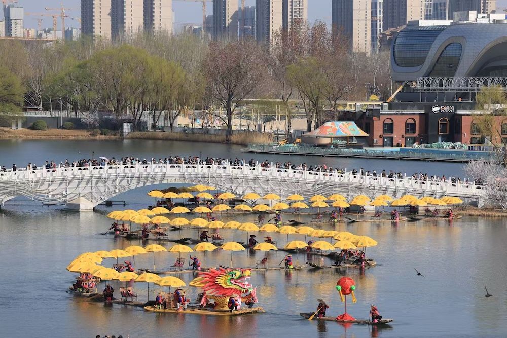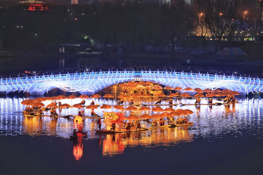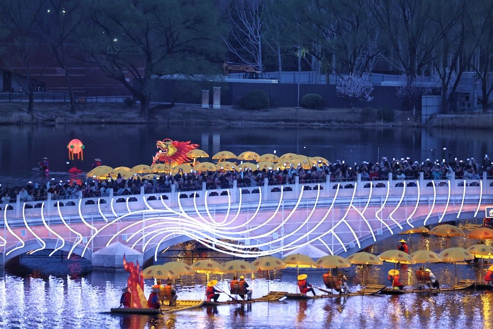 3月22日,来自桂林阳朔的“金龙”巡游非遗项目跨越千里亮相北京亮马河。作为广西桂林代表性非遗,“金龙”将漓江山水的灵秀气韵与非遗技艺的匠心传承,融入国际风情水岸的摩登夜色。流光龙影与河畔灯火交相辉映,非遗底蕴与都市活力完美交融,为亮马河再添一道璀璨夺目的水上盛景。作为国际化城市文旅目的地,亮马河沿线持续举办各类国际与国潮文化活动,让市民游客在河畔尽享多元视听盛宴。