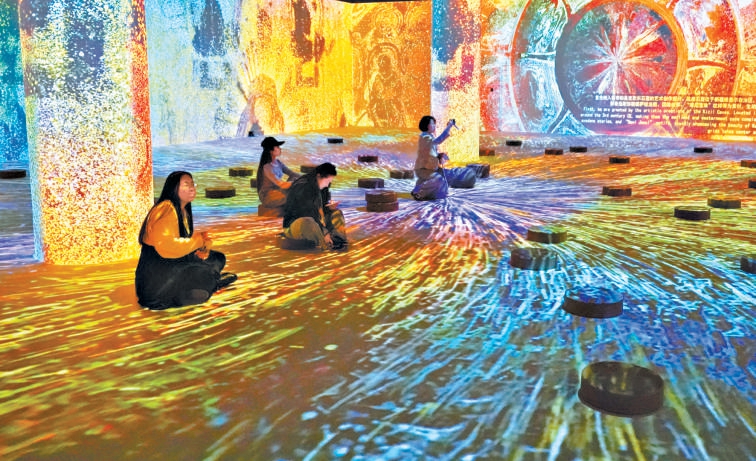 《华彩万象——石窟艺术沉浸体验展》让观众宛如进入光影的幻境中。本报记者 王海欣摄