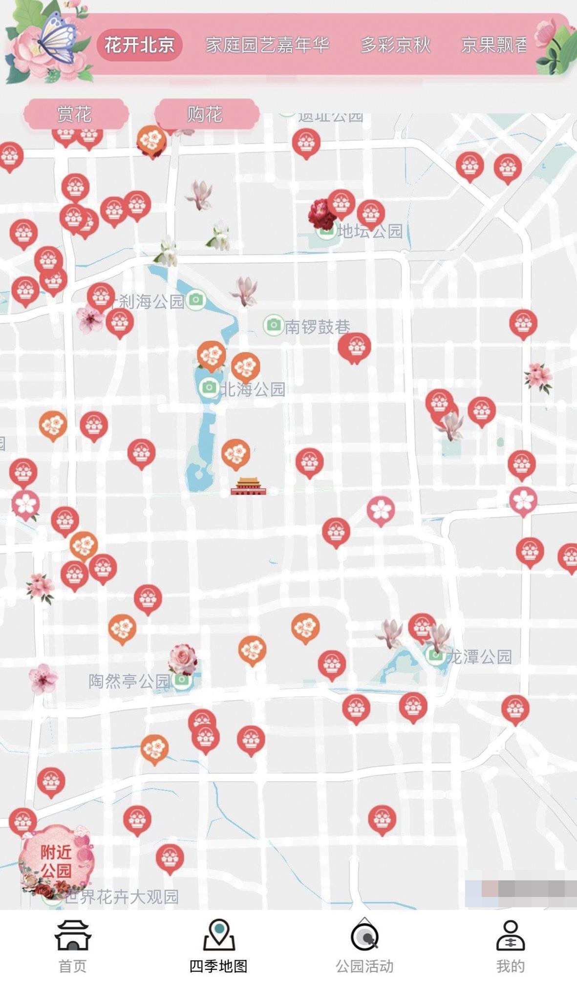 赏花购花地图(手机截屏)。 图/首都园林绿化公众号