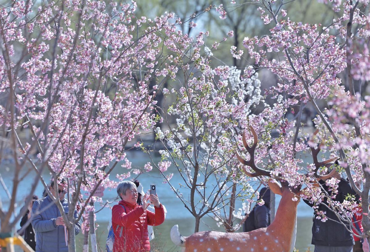 园内近1.5万平方米地栽海棠将陆续进入花期,与连翘、榆叶梅、碧桃等春花灌木竞相绽放,勾勒出色彩斑斓的醉人画卷。