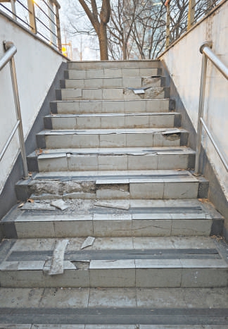 有的地下通道无法连通商场,环境比较脏乱,台阶地砖破损脱落。