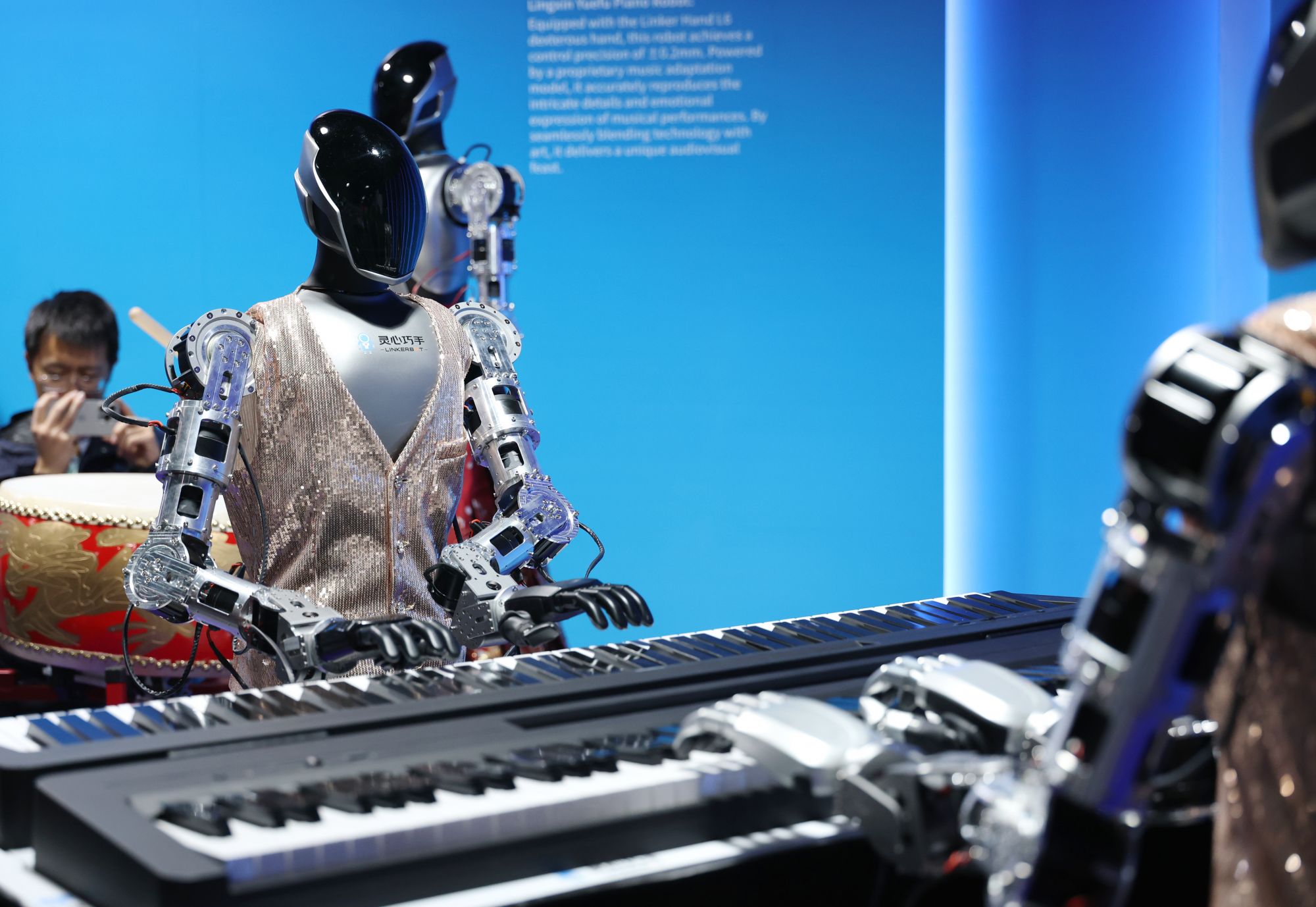 3月24日,在中关村论坛年会新闻中心内,人形机器人在演奏音乐。新华社记者 张晨霖 摄