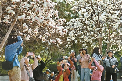 春风拂过京城,古韵悠悠的普度寺迎来最美春日景致,寺内玉兰花尽数绽放,与古建相映成趣。盛开的玉兰吸引大批市民前来,手持相机、手机,或驻足赏花,或定格花与古寺同框的画面,用镜头记录这份限定春光。