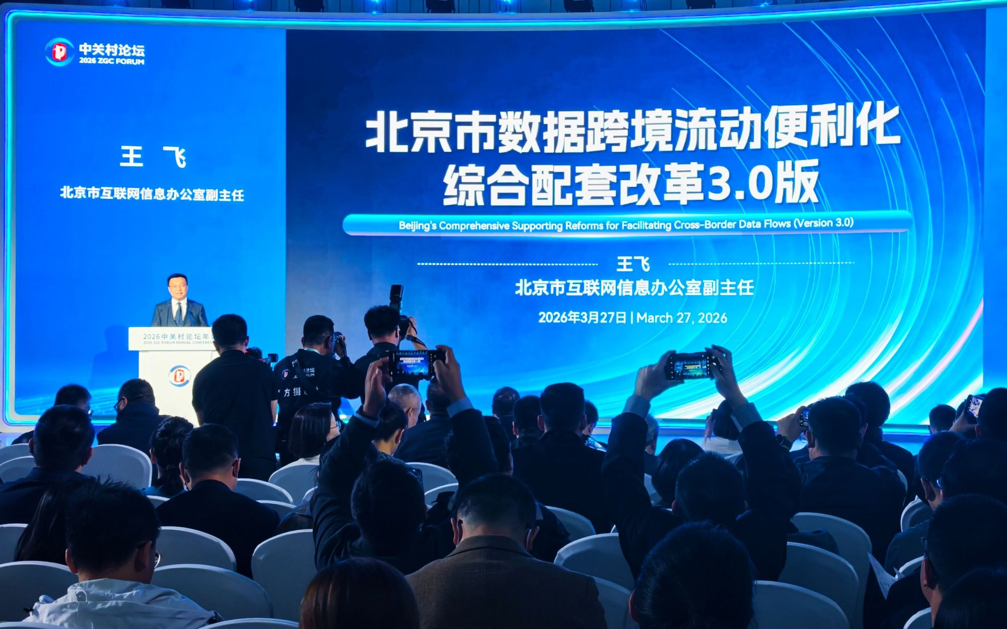 3月27日,2026中关村论坛数据跨境流动创新发展论坛在中关村国际创新中心举行。论坛上,北京正式发布数据跨境流动便利化综合配套改革3.0版方案。