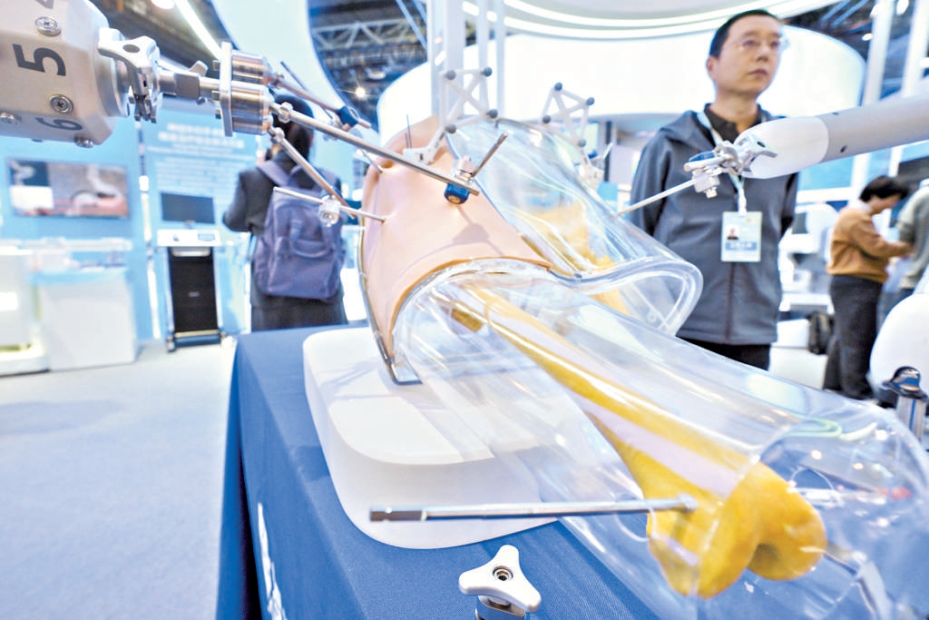 北京罗森博特科技有限公司推出的智能化骨科手术机器人系统基于统计学模型的自动规划算法,3分钟即可快速完成手术规划。系统具备全程实时动态三维可视化导航,高精度光学追踪实现亚毫米级定位。160N强劲机械臂载荷,提供力位协同控制,可自动执行手术操作。该系统真正实现骨科手术全自动、全流程数智化微创治疗,显著提升手术精准度与安全性。本报记者 程功摄