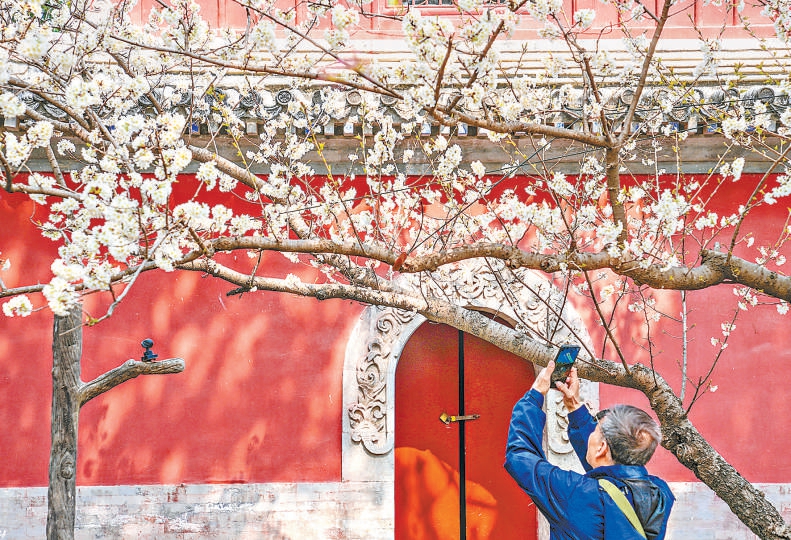 大觉寺内春花次第绽放,吸引众多游客前来赏景游玩。 本报记者 武亦彬摄